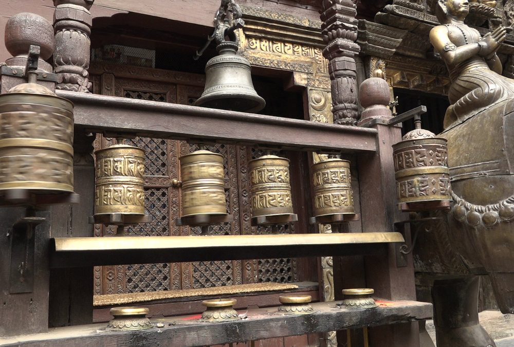 Given the traditional blessings associated with disseminating mantras – improving the world as well as garnering immense quantities of puṇya for the devotee – it should not be surprising that mechanical means of increasing the repetitions and scale of broadcasting them were invented and that devotees set up rows of hundreds of mantra wheels located around stūpas, so that devotees can spin each of them during circumambulations.