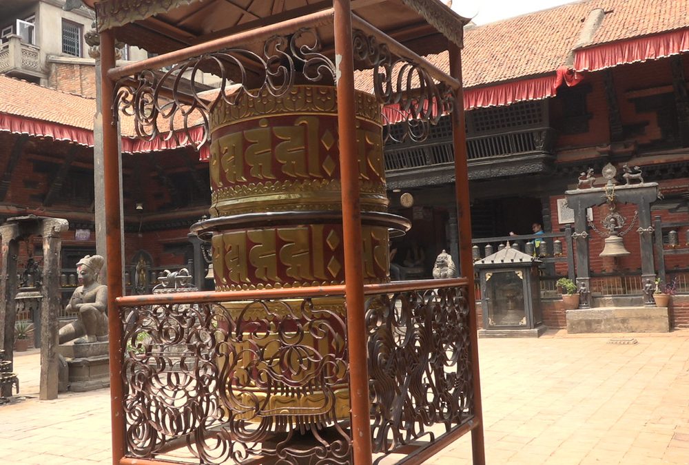 Inside the wheels are placed tightly-wrapped mantras on paper, wound and secured to fill the interior space, leaving a hollow hub. In the recent past, artisans created these rolls of paper making the mantras with wood-blocks that were inked and repeatedly stamped thousands of times; today, computer printers in some ateliers reproduce the mantras that are wound into the same hollow-centered sphere.