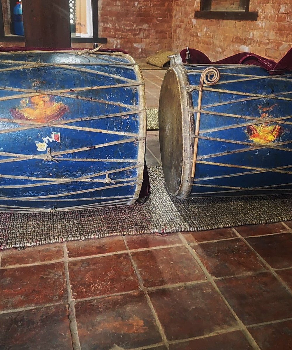 Perhaps the most common native Newar devotional musical ensemble is the Dhimay Bājan. This form is exclusively done by the Newar farmers (Jyāpu), who bring their bājan to worship both Hindu and Buddhist deities. The dhimay includes one or more drummers playing an oversized drum (Dhimay) with a light drumstick joined by a single player of a large clanging gong that provides a steady beat.
