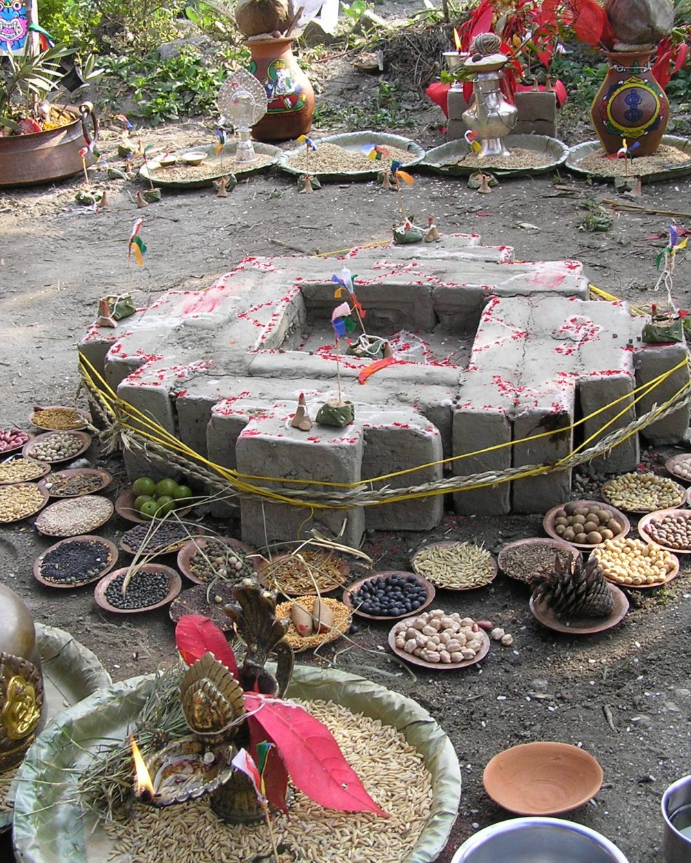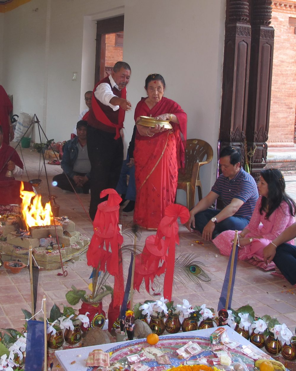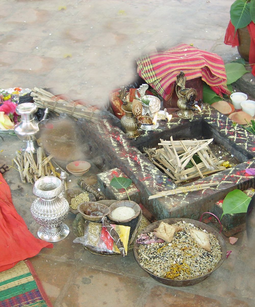 Homa, a ritual offering of clarified butter and grains to a fire, was first known from Vedic times centuries before the life of the Buddha. Not extant in the early centuries if the faith and never performed in Theravāda societies, adherents to later Mahāyāna and Vajrayāna traditions introduced it, changing some of the ritual tools and introducing religious with their philosophical doctrines. To become a member of the Newar Buddhist sangha, male vajrācāryas must be initiated and trained to perform this common practice.