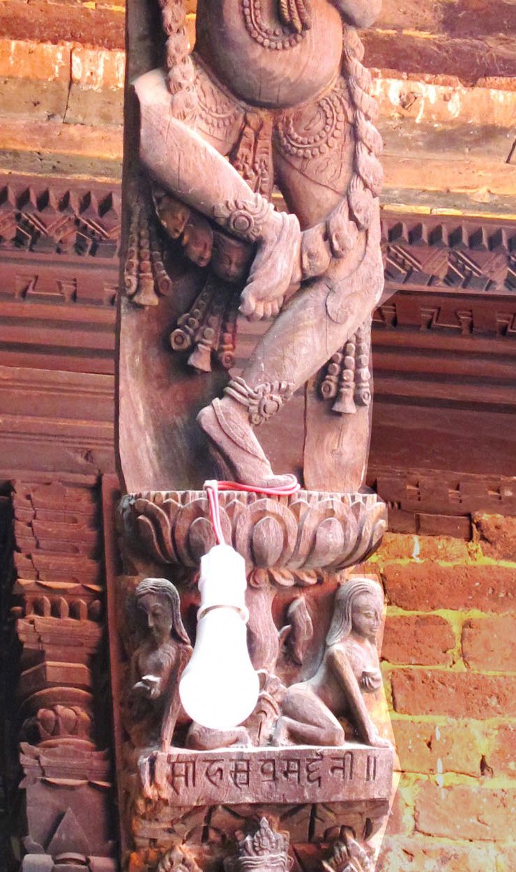 A distinctive characteristic of Newar culture today is the continuity of archaic artistic traditions. Although artisans have adopted some labor saving and modern technologies … [sandpaper, oils, photos of model forms, etc.], the basic practices of meticulous hand-crafting and apprenticeship endure, with the masters still doing the central, most intricate, and exquisite images.